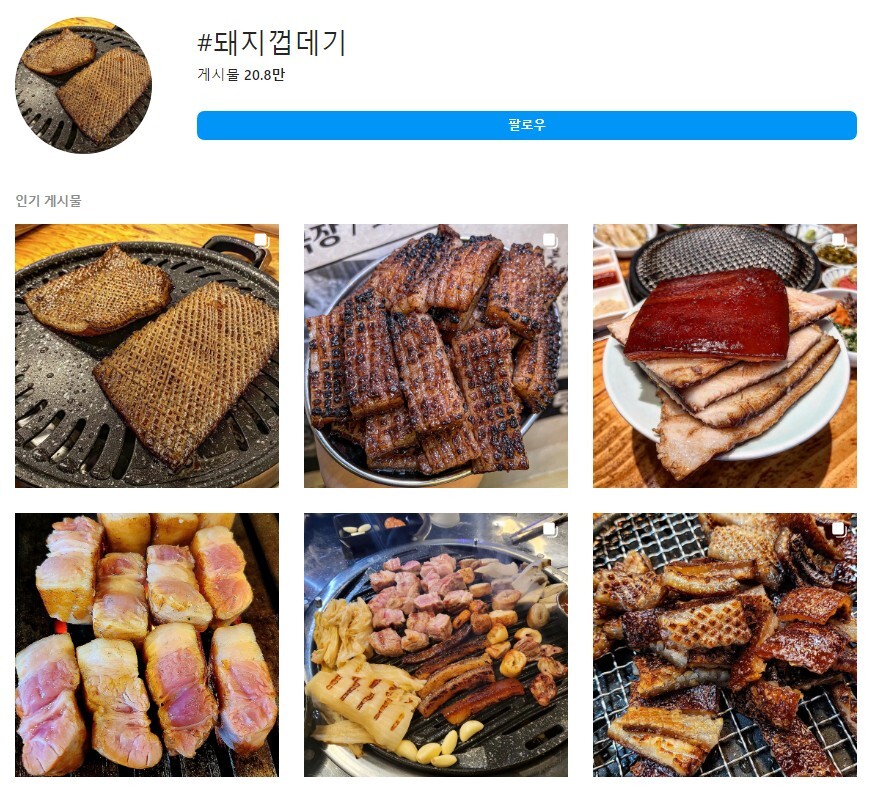 돼지 껍질이 유행하니 먹는 사진을